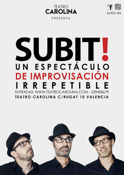 Cada show es único y especial con Xavi Romero, David Fajardo y Ezequiel Navarro. Pásate por el Teatro Carolina y disfruta de SUBIT!, un espectáculo de improvisación donde el guión de las historias lo propones tú.